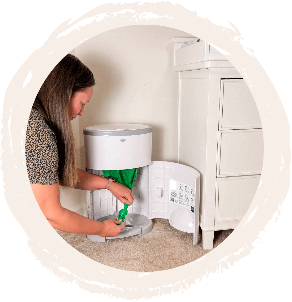 Superenkelt att tömma: Öppna luckan, dra ut refillen och skär av påsen med den inbyggda barnsäkra skäraren. Knyt ihop påsen, släng den och du är redo för nästa blöja. Markeringar i slutet av pås-tuben visar att det snart är dags att byta refillpåse.